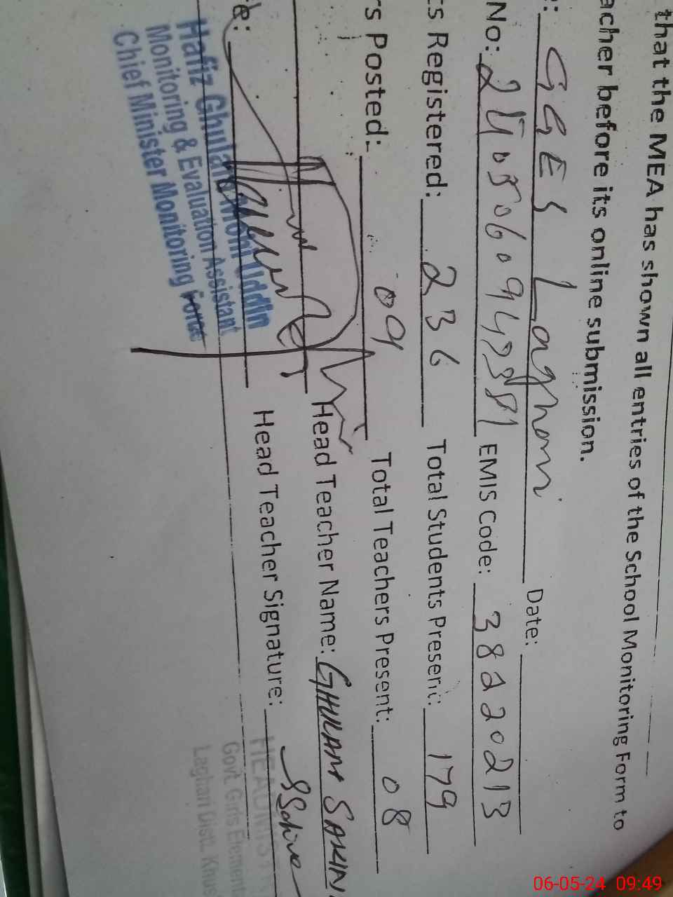 | EMIS Code: 38220213 | Name of School: GGES LAGHARI | |||