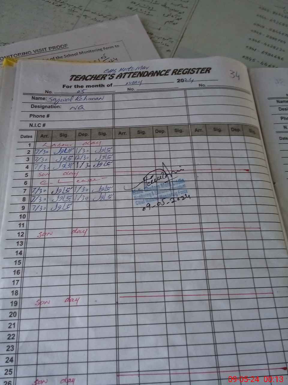 | Name: Sh**** Al**** Designation: (School Headmaster's/Headmistress's) SST G Phone/Cell Number: 03**** |