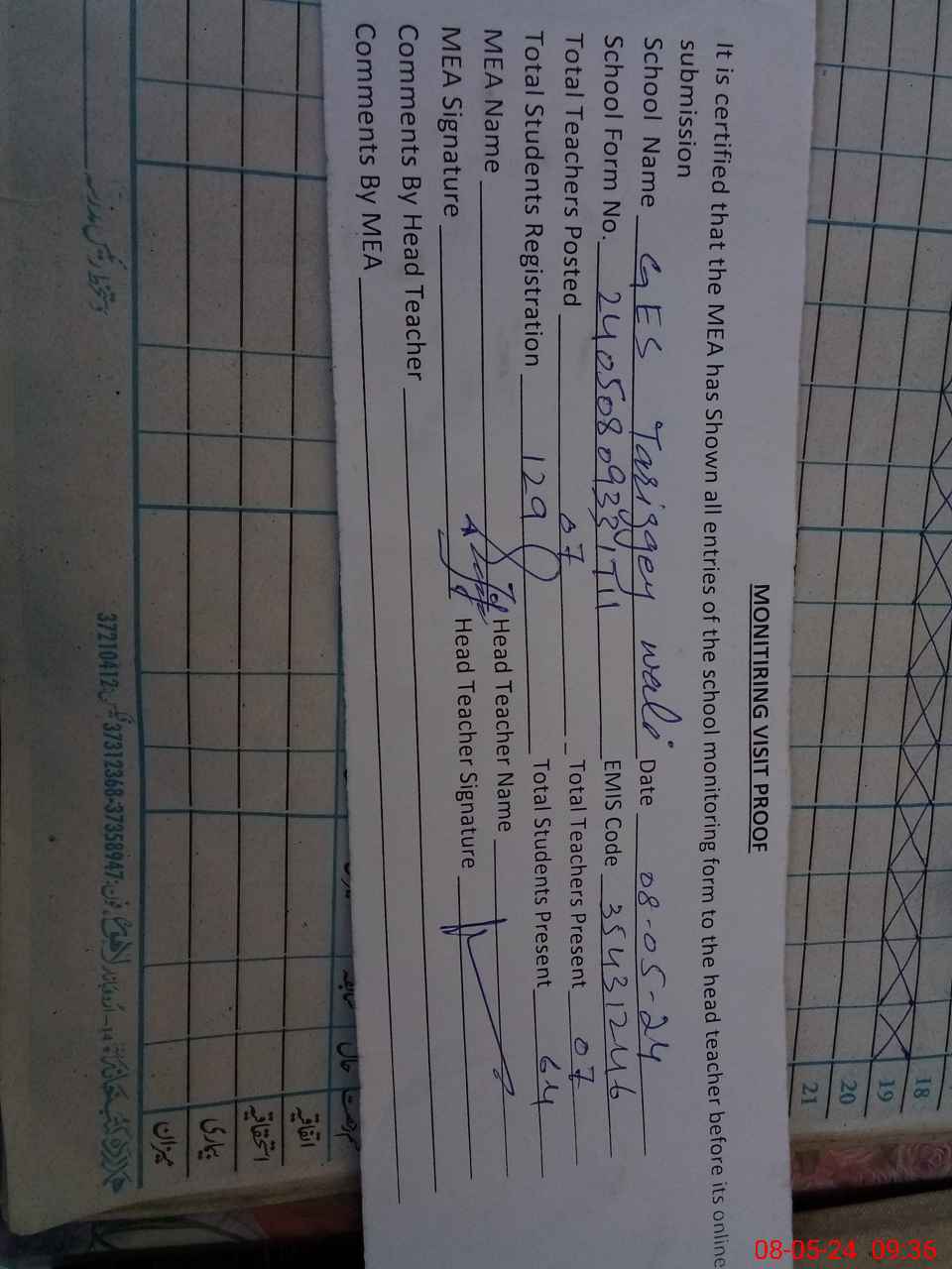 | Name: Mu**** Az**** Designation: (School Headmaster's/Headmistress's) EST Phone/Cell Number: 03**** |