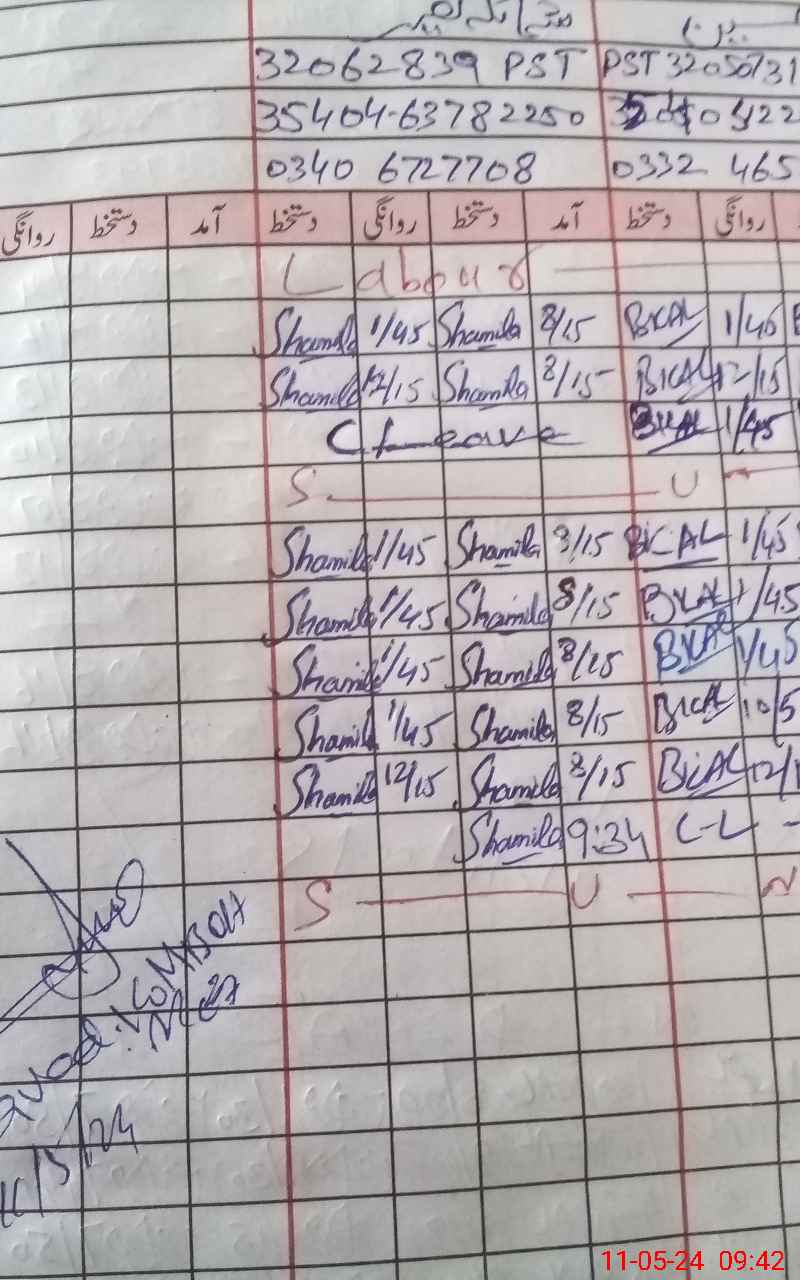 | CNIC | Full Name | Designation | R/C | Absence During Last Calender Month |