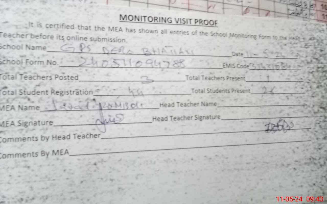 | Attendance Register | Head Teacher | MEA with School | Visit Proof |
