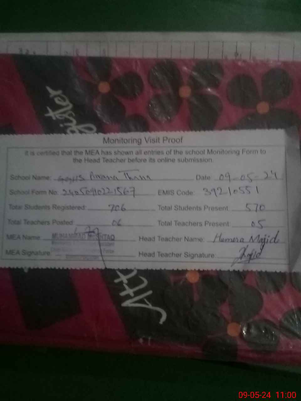 | Certified that this School was Inspected by the Undersigned MEA/DMO Today and the Information Stated Above is as Per Record. | |||||