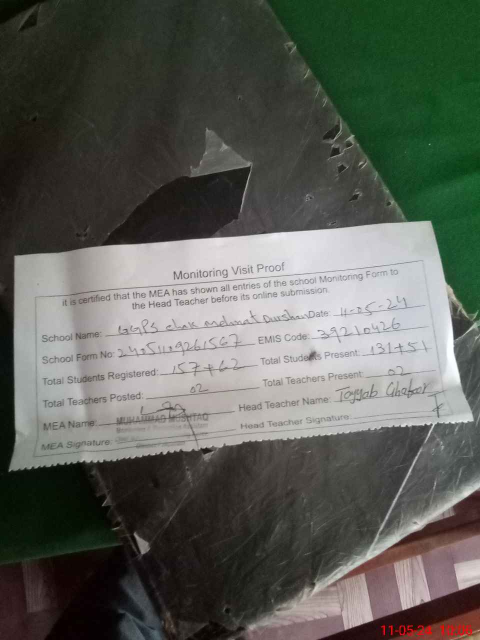 | EMIS Code: 39210426 | Name of School: GGPS CHAK MEHNAT DURSHAN | |||