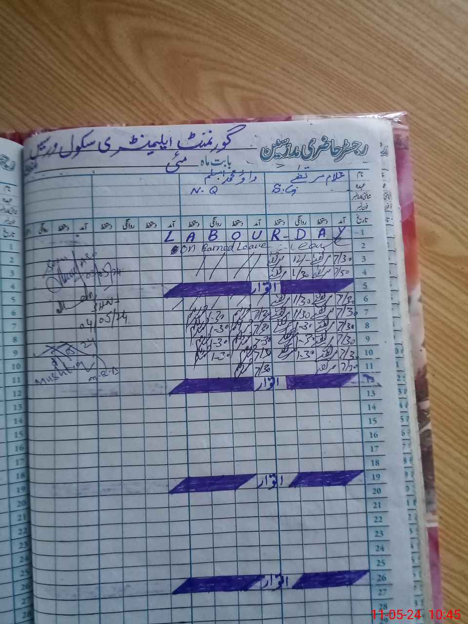 | Leave | Duty | Absent | Maternity | Medical | Ex- Pak |