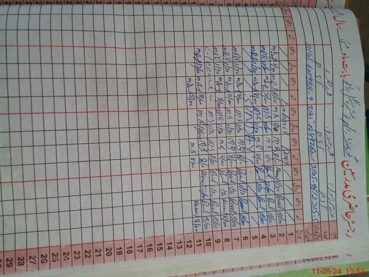 | CNIC | Full Name | Designation | R/C | Absence During Last Calender Month |