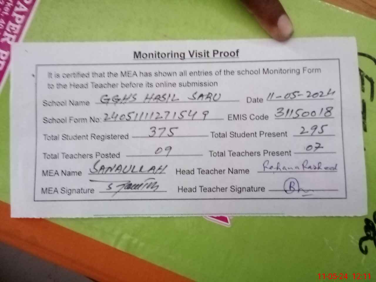 | EMIS Code: 31150018 | Name of School: GGHS HASIL SARU | |||