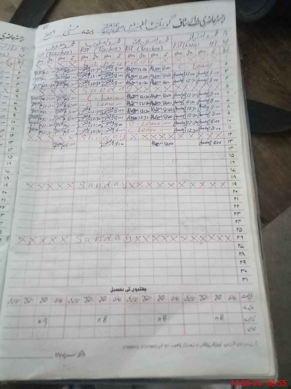 | CNIC | Full Name | Designation | R/C | Absence During Last Calender Month |
