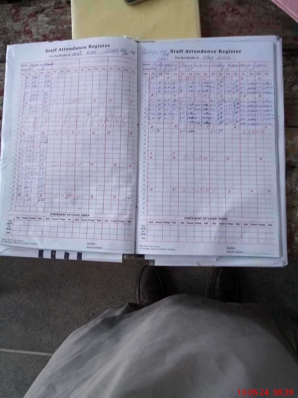 | Leave | Duty | Absent | Maternity | Medical | Ex- Pak |