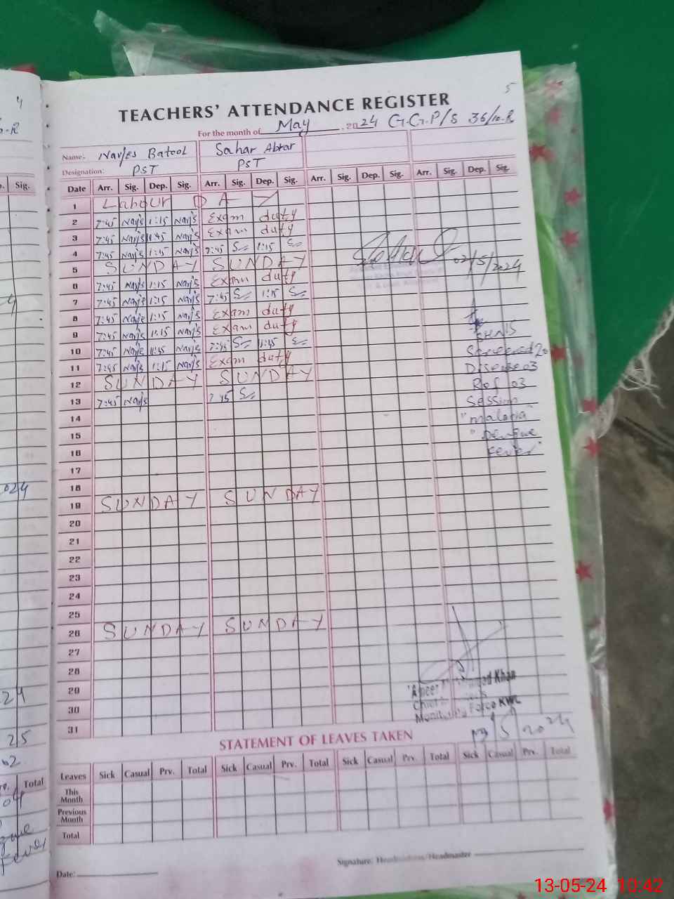 | Name: Na**** Ba**** Designation: (School Headmaster's/Headmistress's) PST Phone/Cell Number: 03**** |