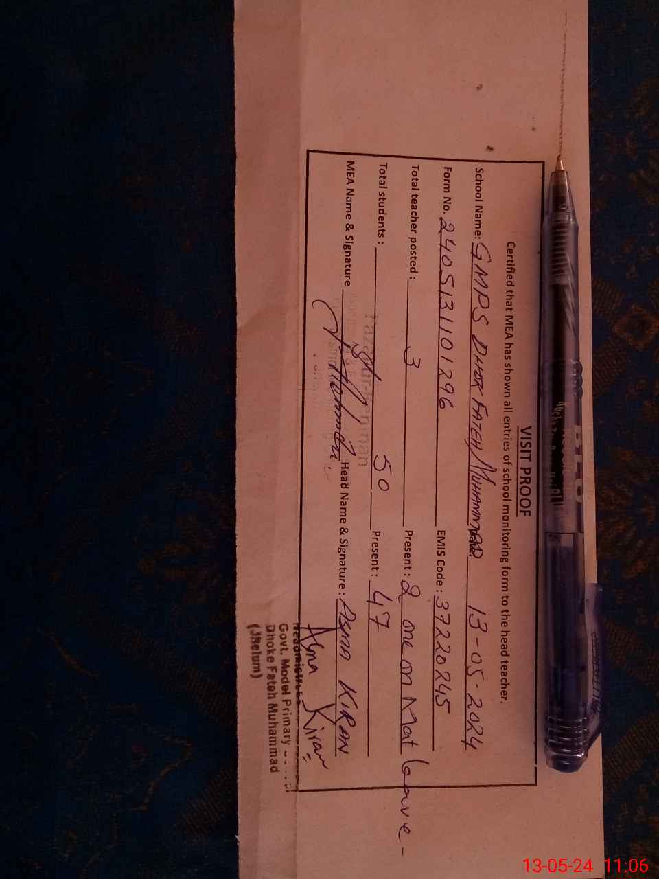 | EMIS Code: 37220245 | Name of School: GGPS DHOK FATEH MUHAMMAD | |||