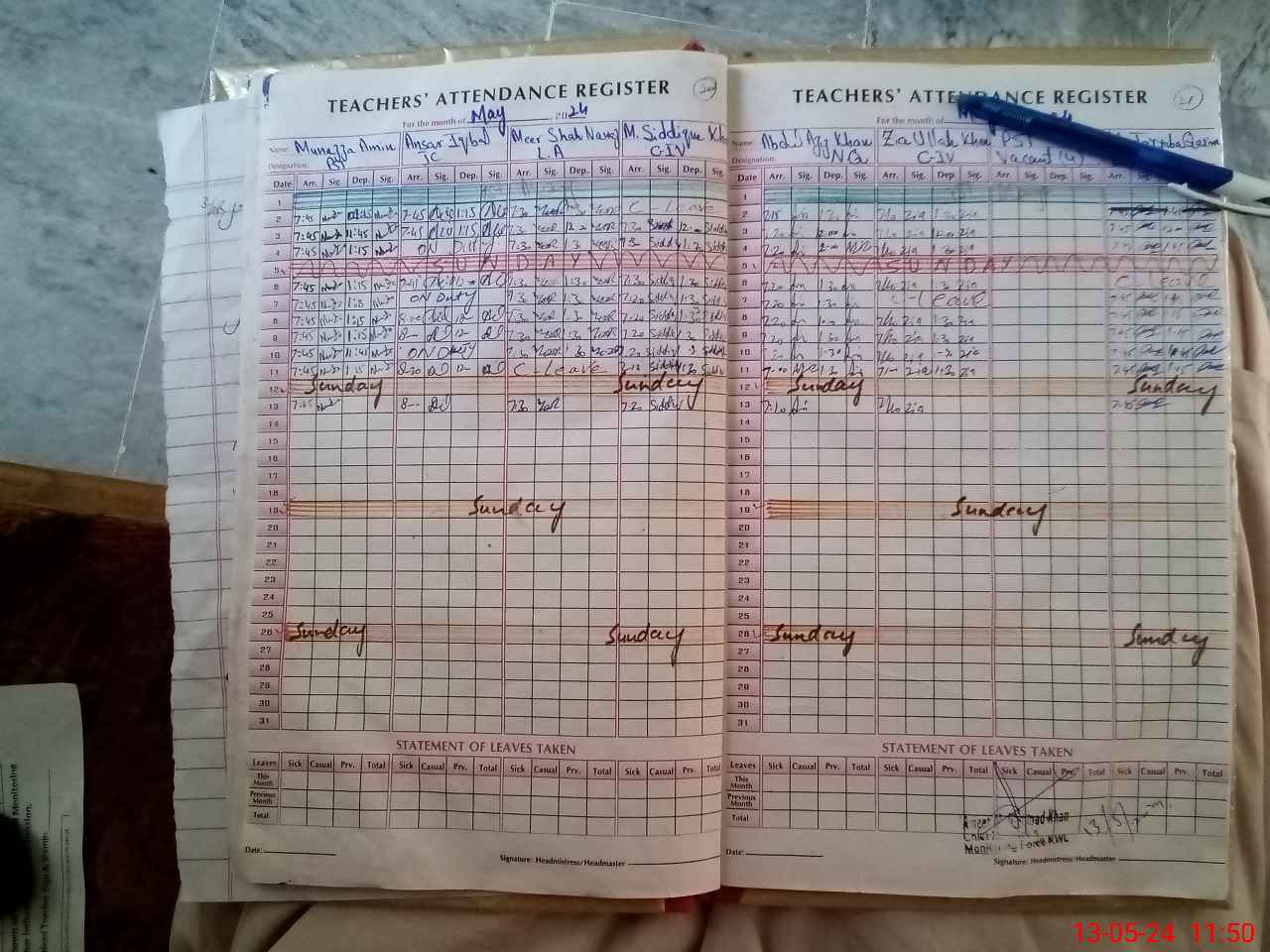 | Remarks (Use Separate Page if Required): EST tayyaba qasim adjusted locally from an other school All locally adjustments are cancelled from school head quarters department but she is working still here with out order of competent authority No actioned taken against him till now | |||||