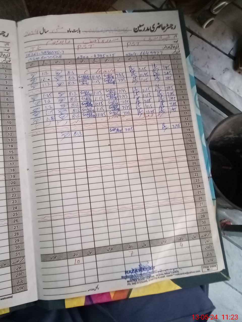 | CNIC | Full Name | Designation | R/C | Absence During Last Calender Month |