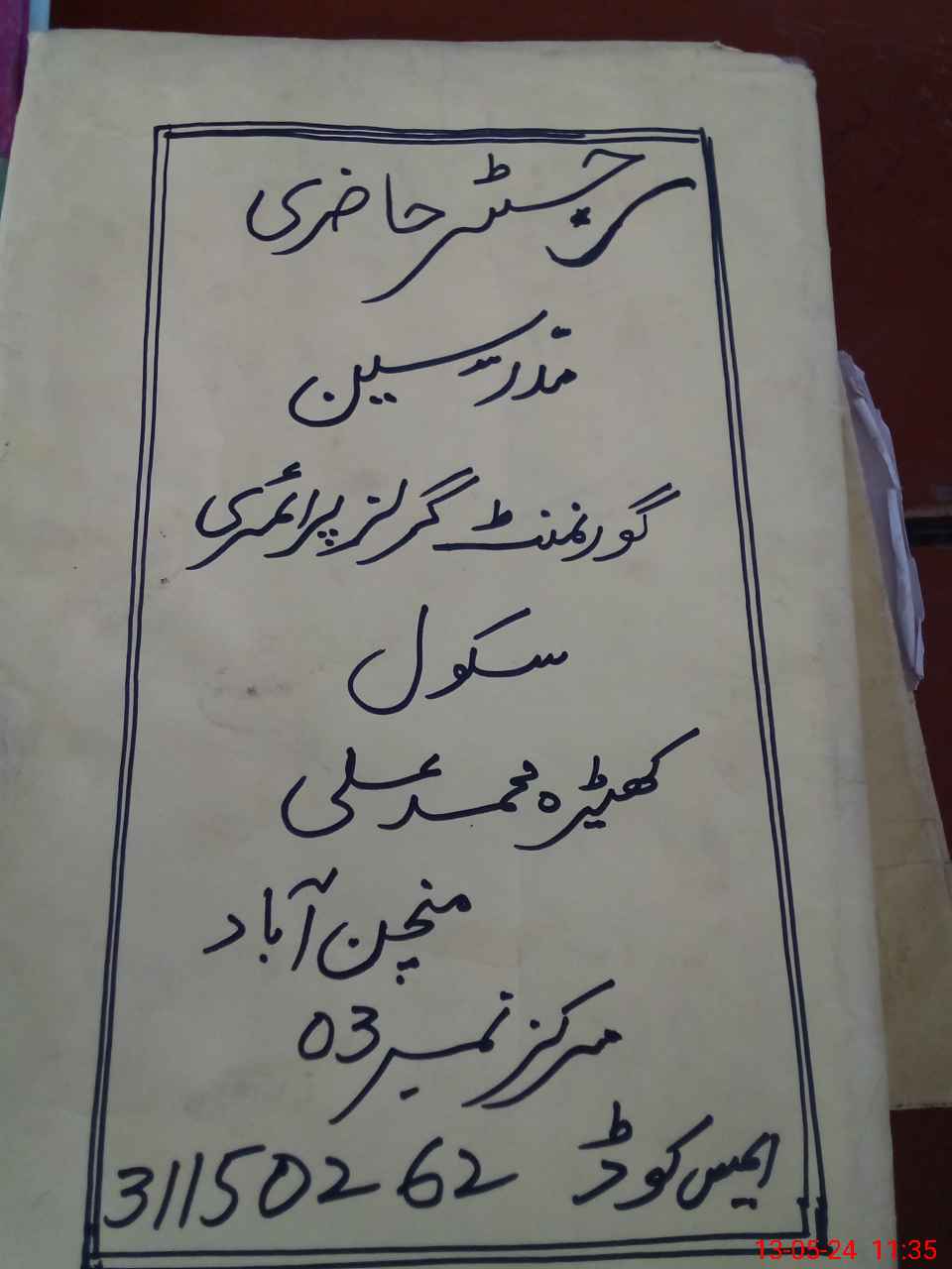 | EMIS Code: 31150262 | Name of School: GGPS KHERA MUHAMMAD ALI | |||