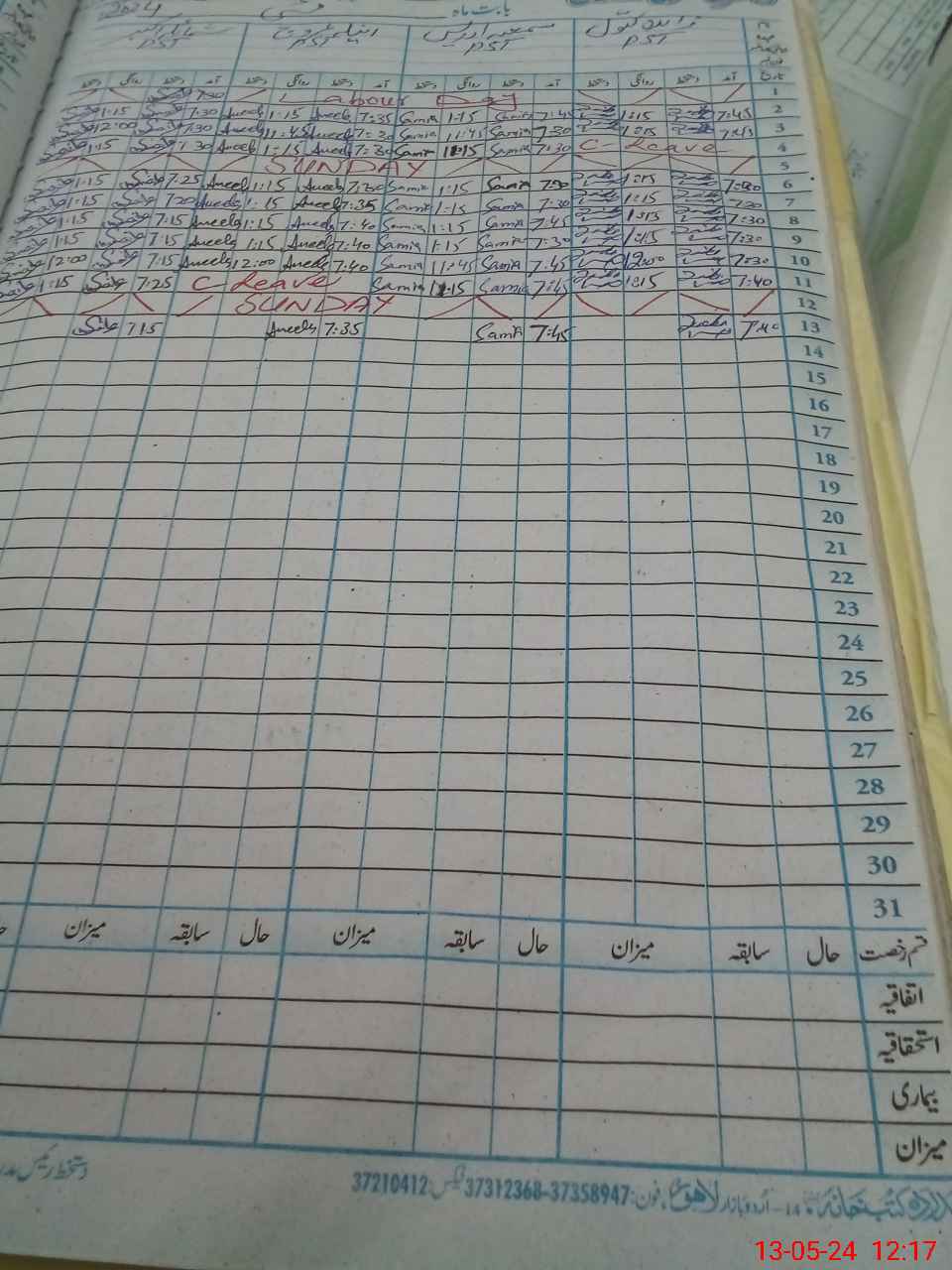 | CNIC | Full Name | Designation | R/C | Absence During Last Calender Month |