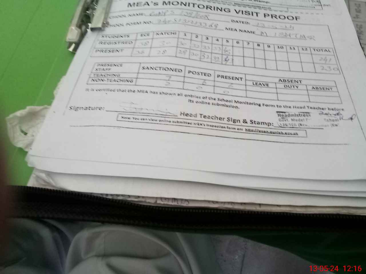| Attendance Register | Head Teacher | MEA with School | Visit Proof |