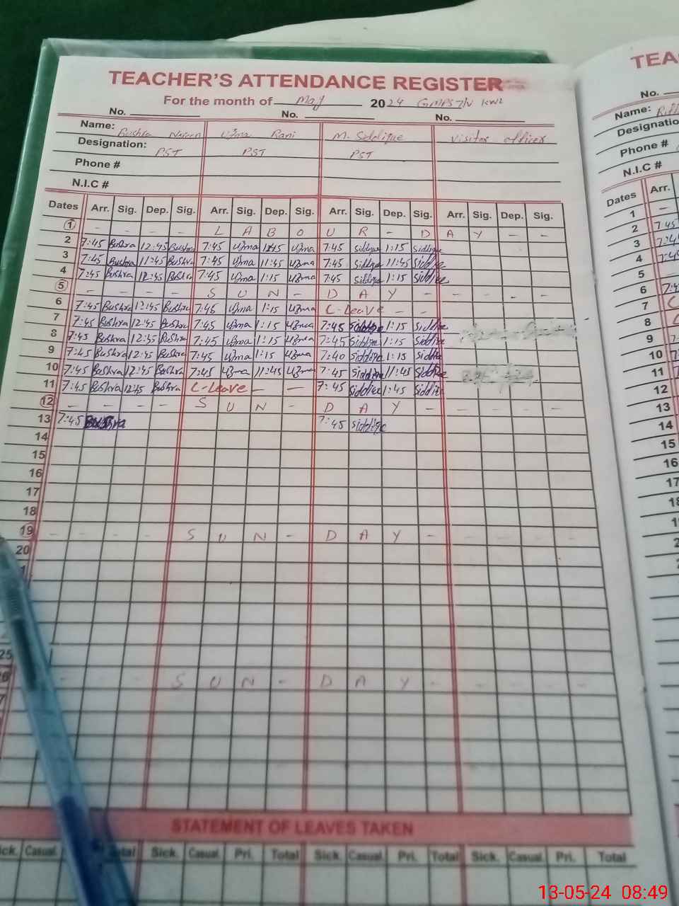 | 36**** | Uz**** Ra**** | 1 | 1 | 0 | 0 | 0 | 0 | 0 | 0 | 0 | 1 | Absent (Un-Authorized) | |