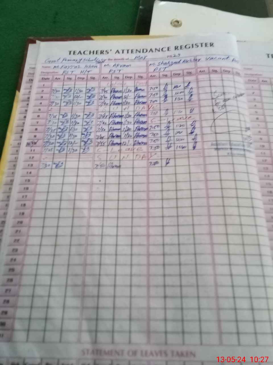 | Name: MFa**** Kh**** Designation: (School Headmaster's/Headmistress's) PST Phone/Cell Number: 03**** |