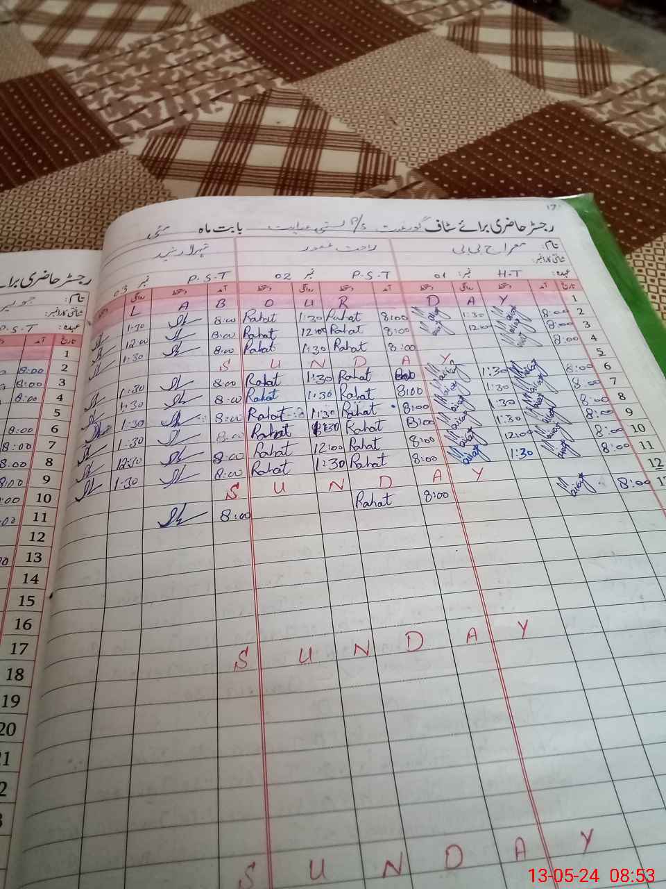 | CNIC | Full Name | Designation | R/C | Absence During Last Calender Month |