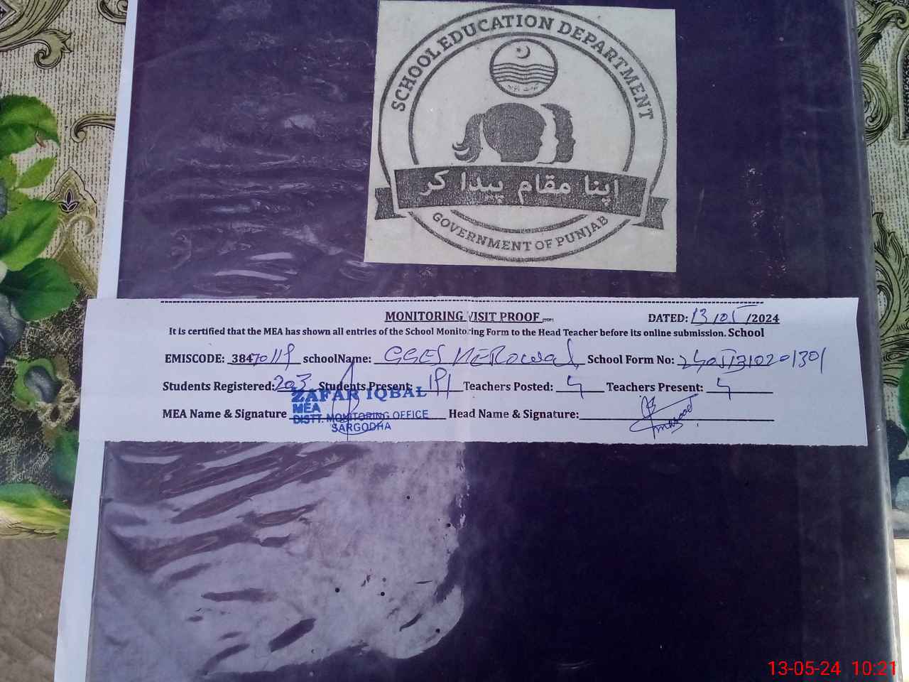 | District: SARGODHA | Tehsil: BHERA | Markaz: HAZOOR PUR - FEMALE | Level: Middle | |