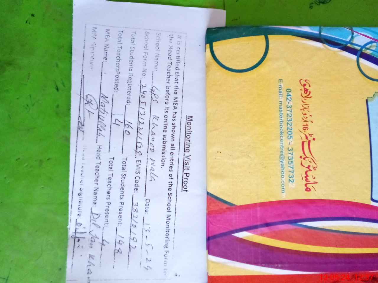 | Attendance Register | Head Teacher | MEA with School | Visit Proof |