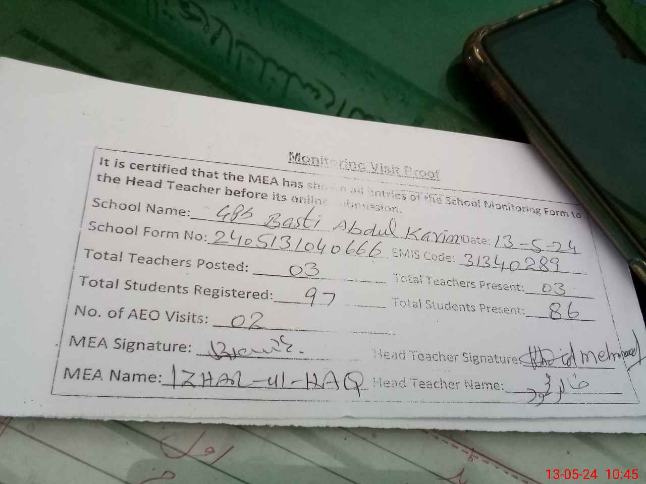 | EMIS Code: 31340289 | Name of School: GPS BASTI ABDUL KARIM | |||