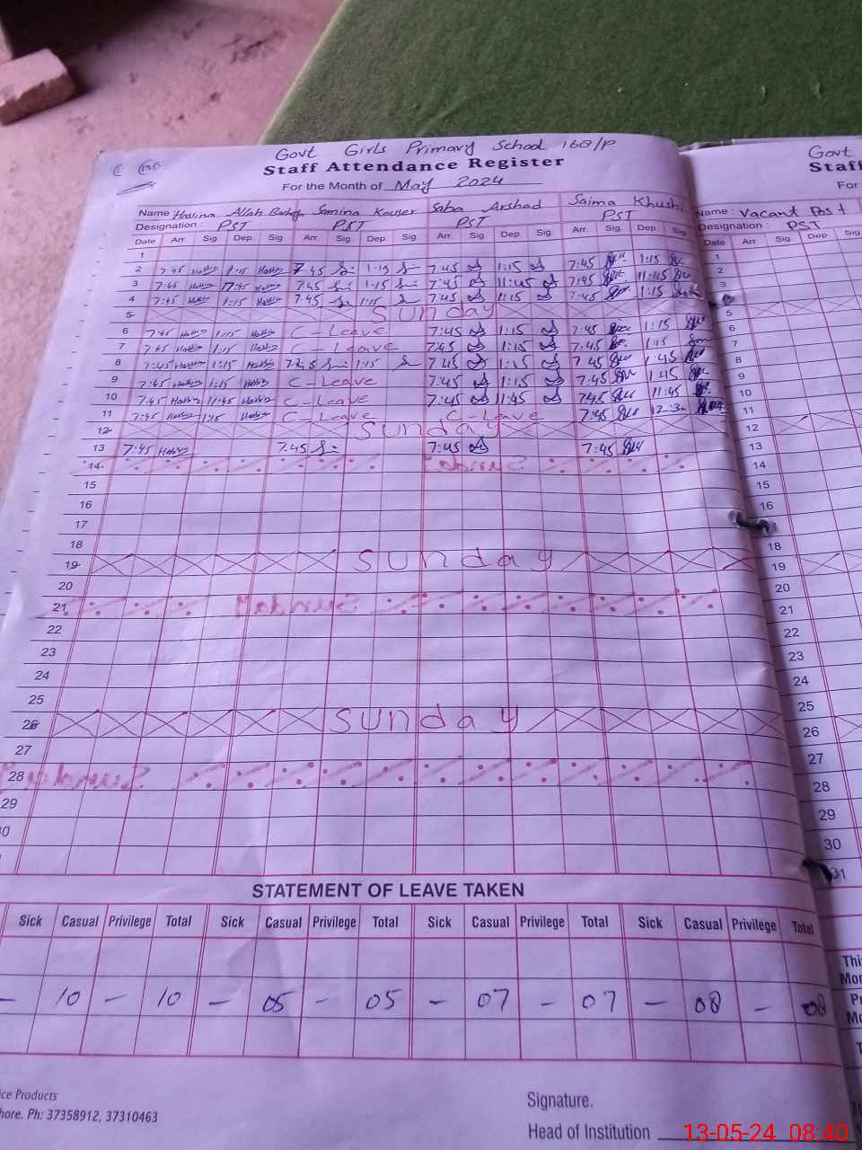 | Name: Ha**** Designation: (School Headmaster's/Headmistress's) PST Phone/Cell Number: 03**** |