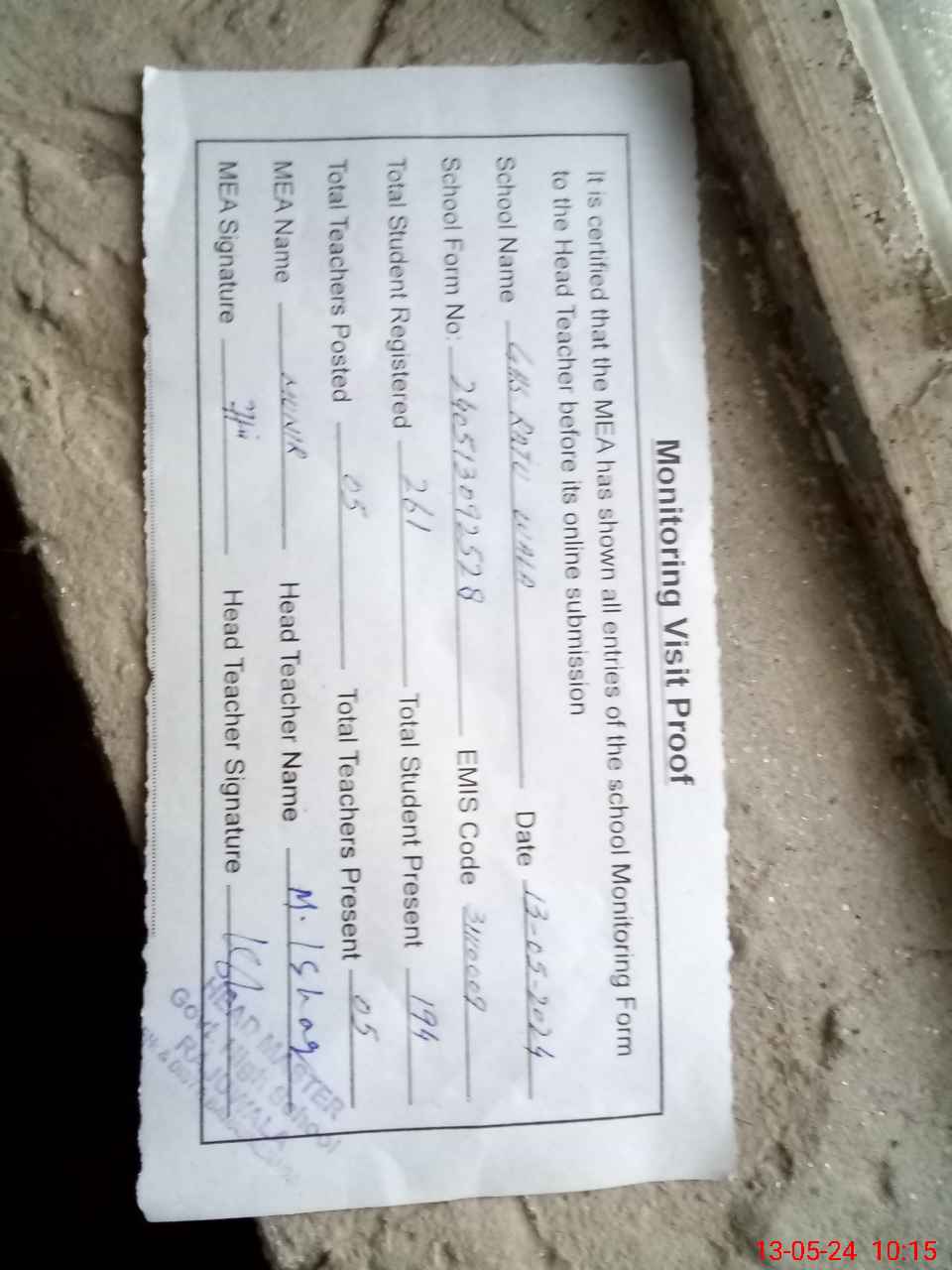| Certified that this School was Inspected by the Undersigned MEA/DMO Today and the Information Stated Above is as Per Record. | |||||