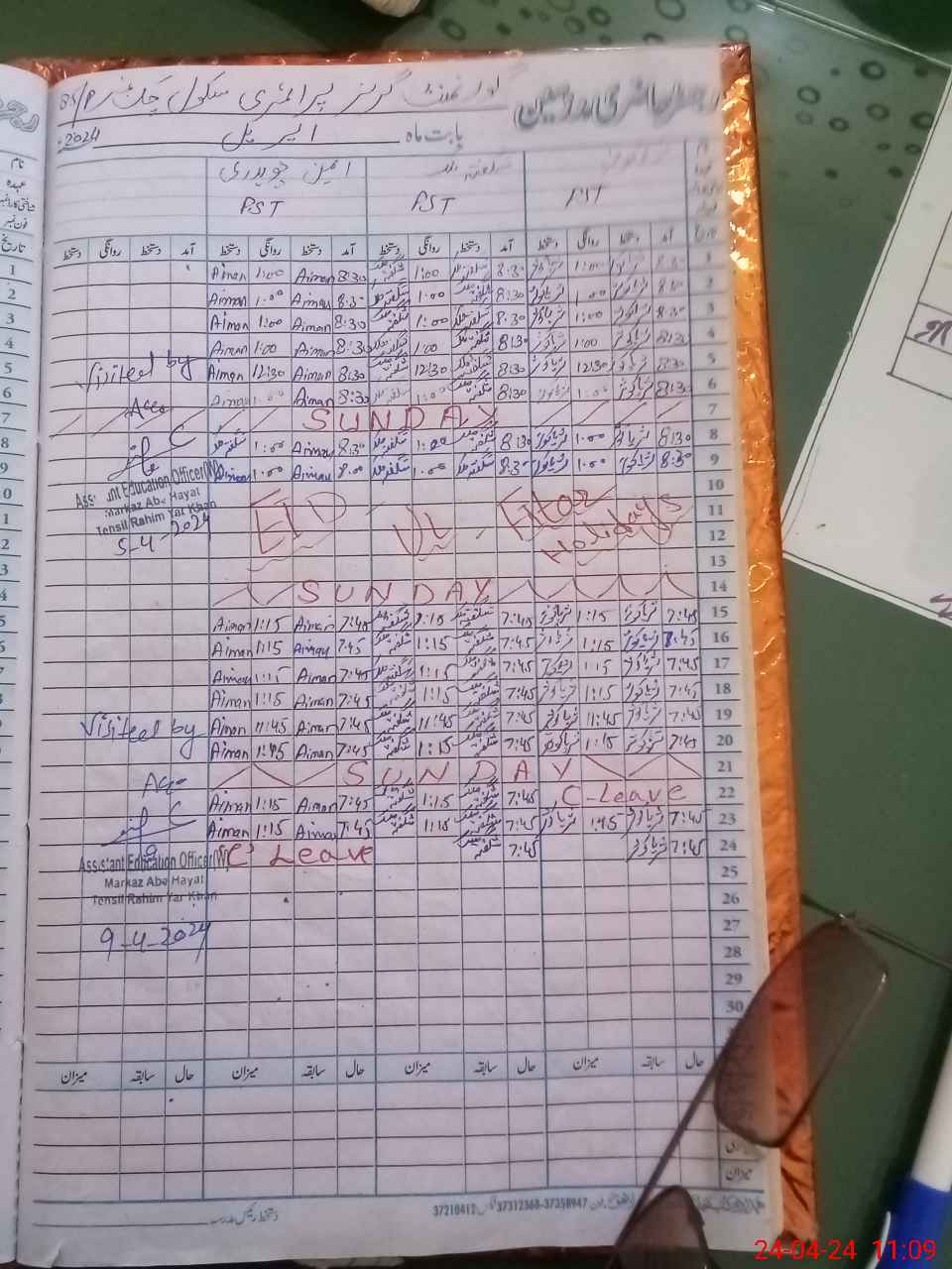 | CNIC | Full Name | Designation | R/C | Absence During Last Calender Month |