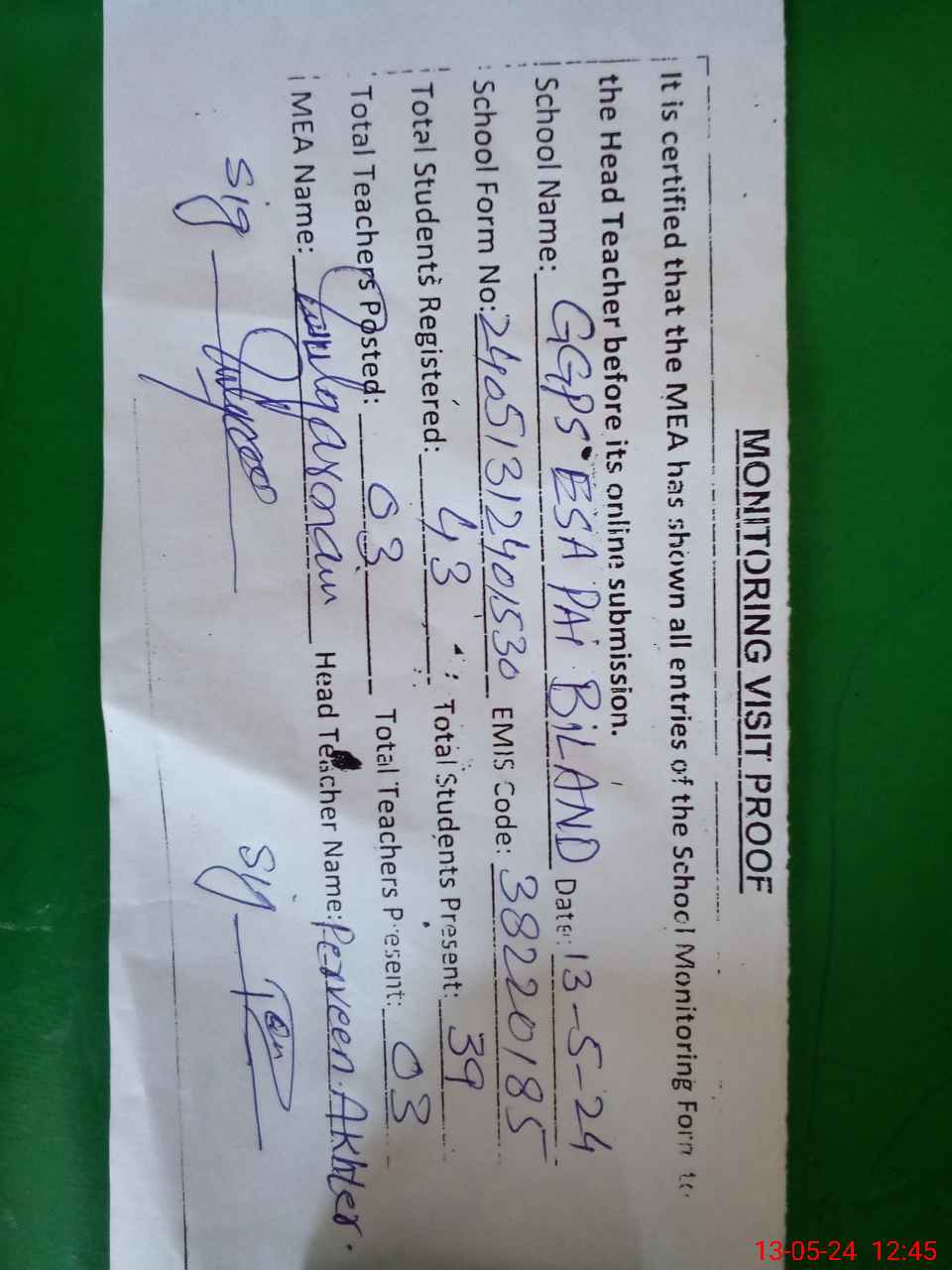 | EMIS Code: 38220185 | Name of School: GGPS ESA PAI BILAND | |||