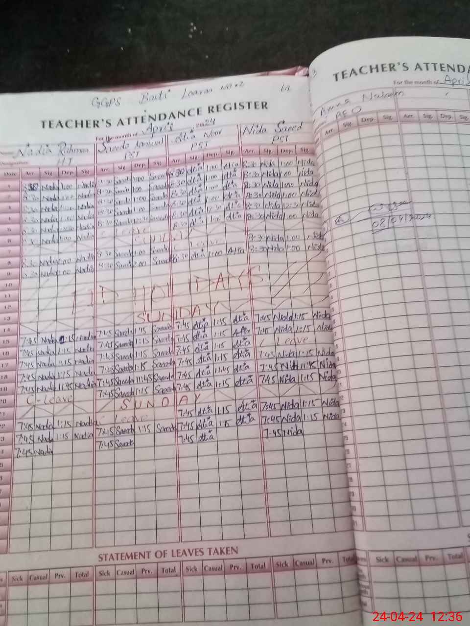 | Leave | Duty | Absent | Maternity | Medical | Ex- Pak |