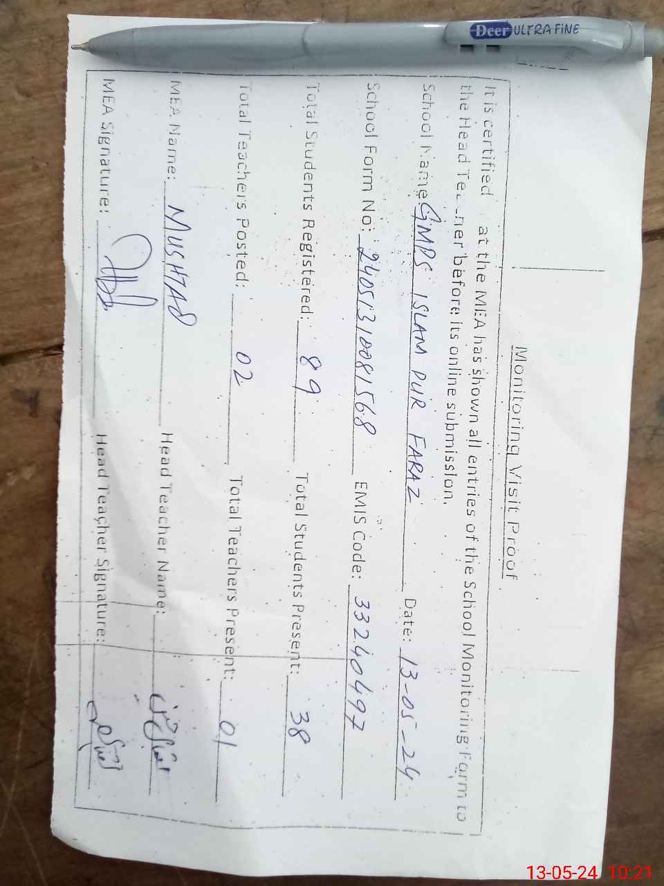 | EMIS Code: 33240497 | Name of School: GMPS ISLAM PUR FARAZ | |||