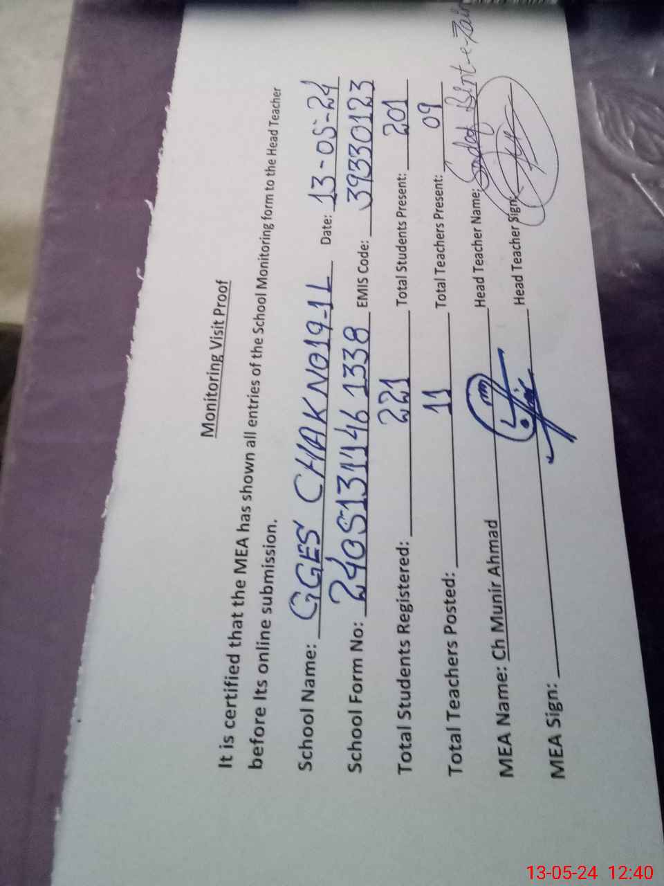 | EMIS Code: 39330123 | Name of School: GGES CHAK NO. 19/1-L | |||
