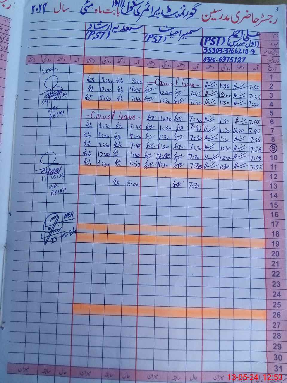 | Name: Ha**** Kh**** Designation: (School Headmaster's/Headmistress's) PST Phone/Cell Number: 03**** |
