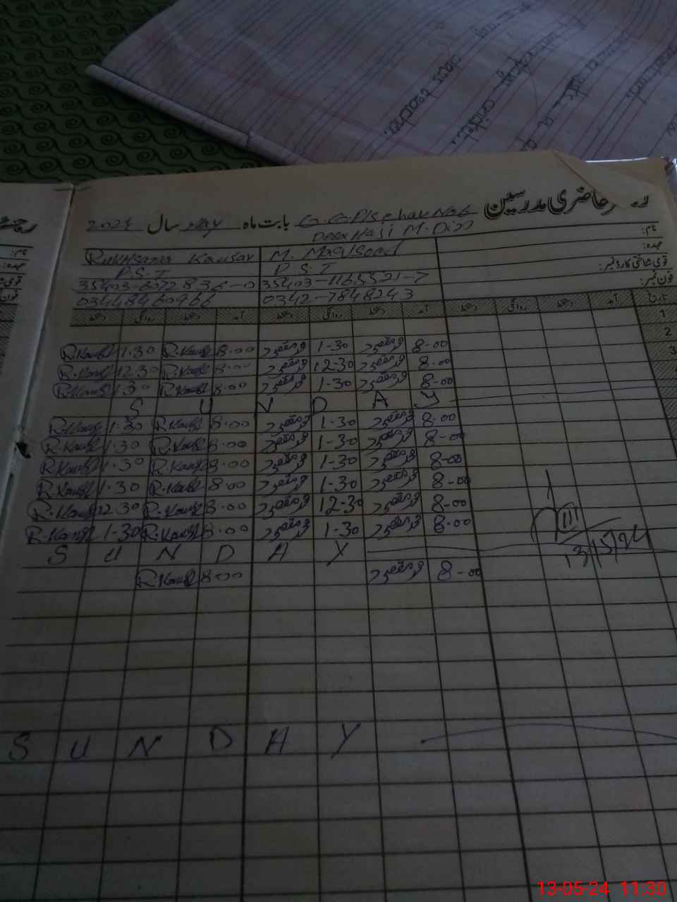 | Name: RU**** KO**** Designation: (School Headmaster's/Headmistress's) PST Phone/Cell Number: 03**** |