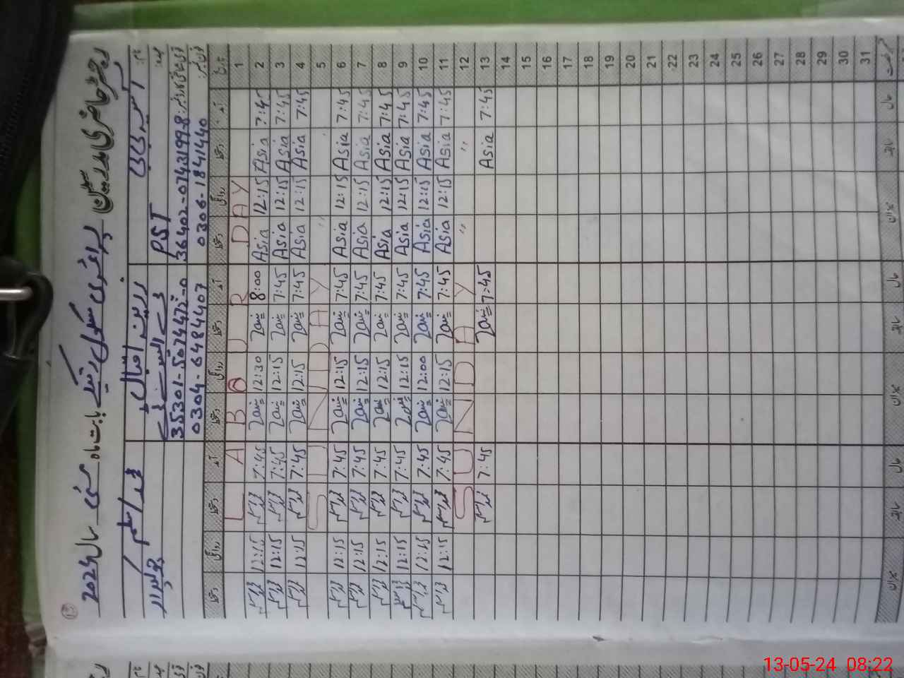 | CNIC | Full Name | Designation | R/C | Absence During Last Calender Month |
