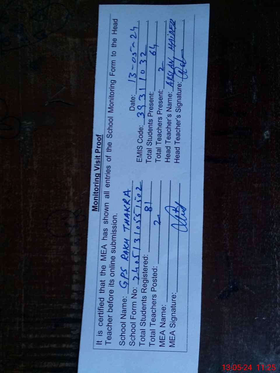 | EMIS Code: 39311032 | Name of School: GPS RAKH THAKRA | |||