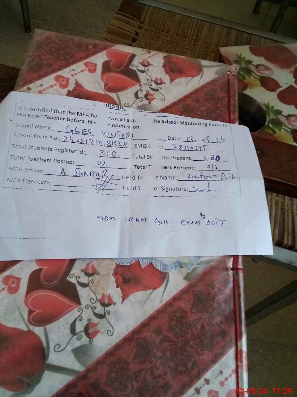 | Attendance Register | Head Teacher | MEA with School | Visit Proof |