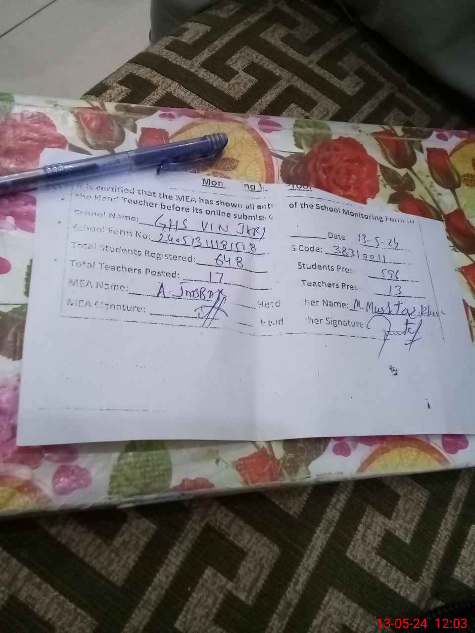 | EMIS Code: 38310011 | Name of School: GHS VANJARI | |||