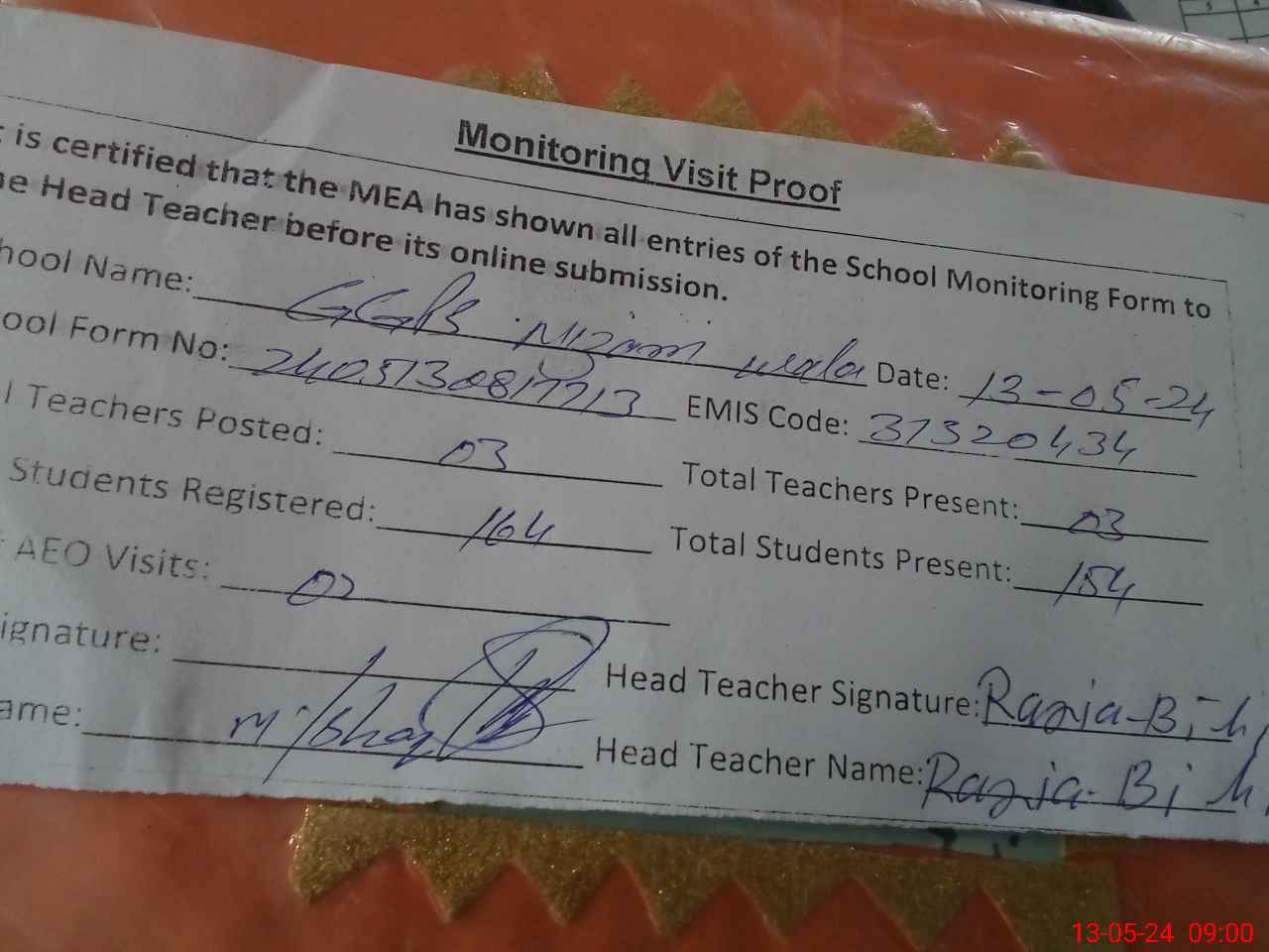 | EMIS Code: 31320434 | Name of School: GGPS NIZAM WALA | |||