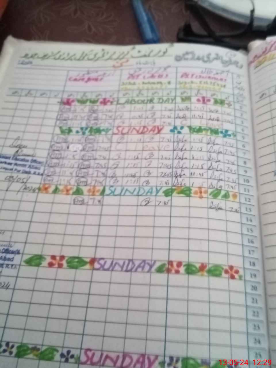 | CNIC | Full Name | Designation | R/C | Absence During Last Calender Month |