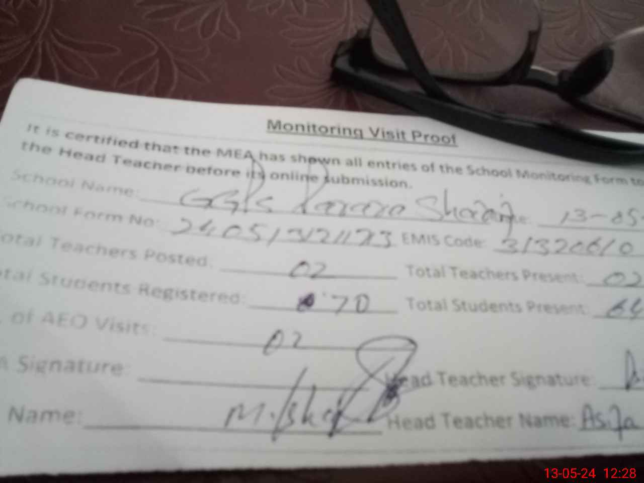 | Attendance Register | Head Teacher | MEA with School | Visit Proof |