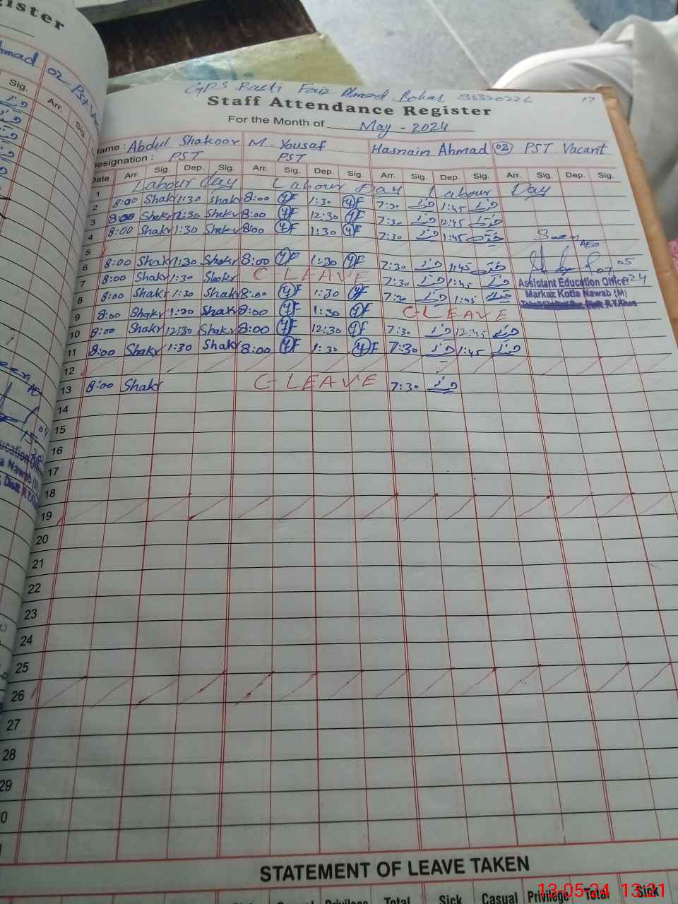| Name: AB**** SH**** Designation: (School Headmaster's/Headmistress's) PST Phone/Cell Number: 03**** |