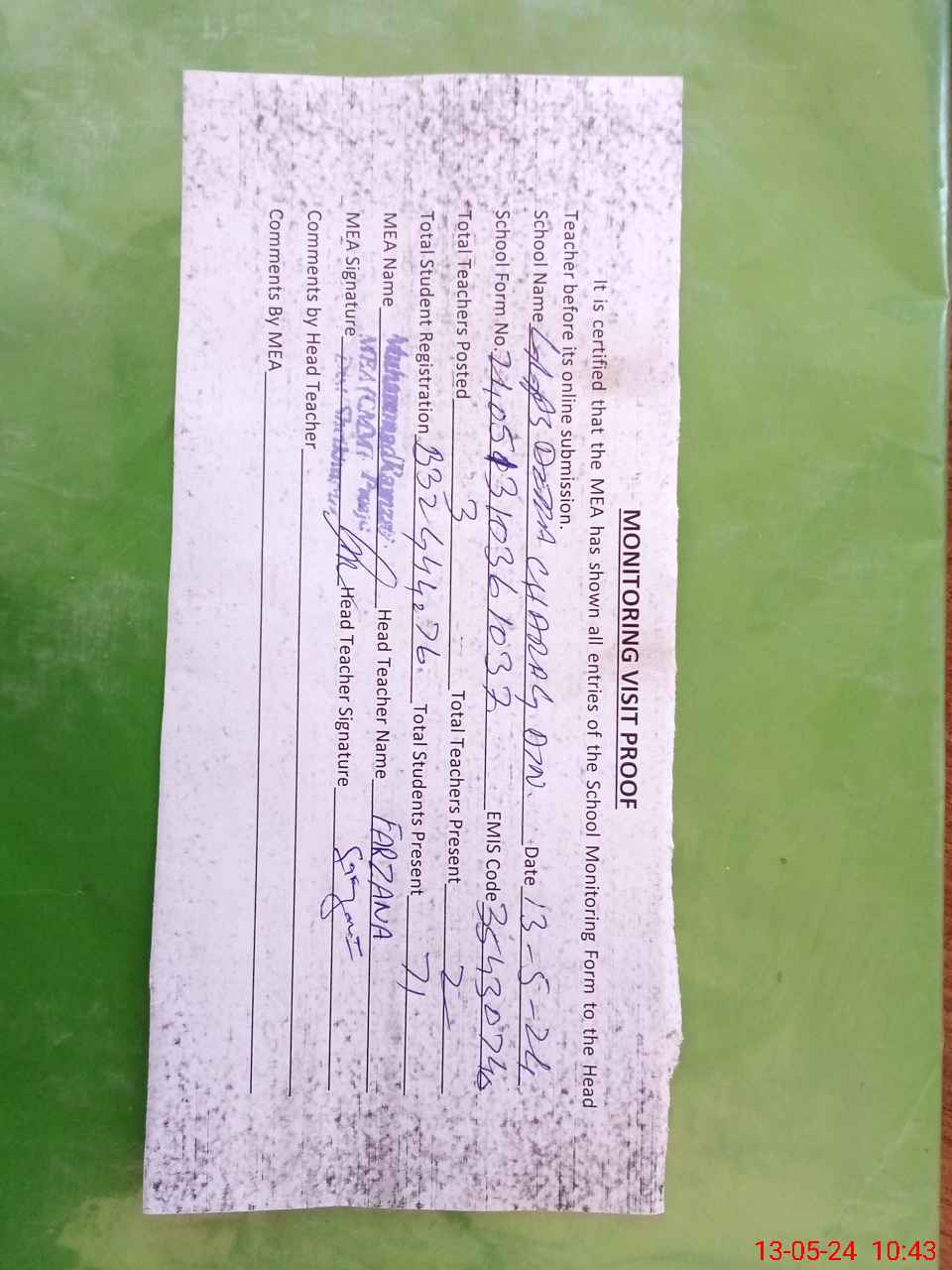 | EMIS Code: 35430740 | Name of School: GGPS DERA CHARAGHDIN | |||
