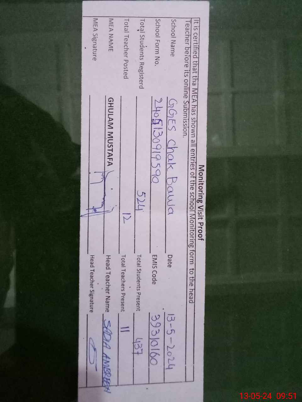 | EMIS Code: 39310160 | Name of School: GGES CHAK BAWA | |||