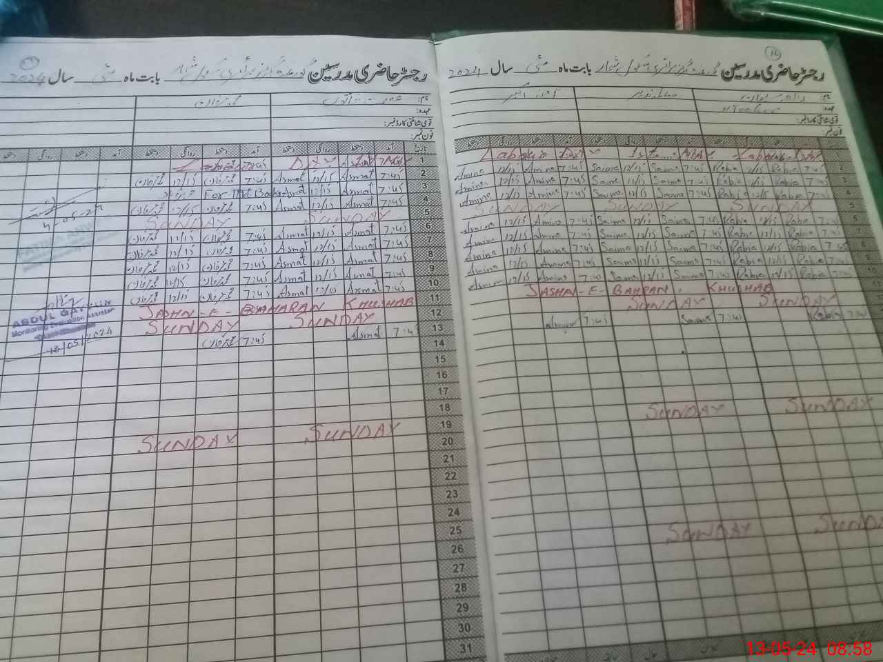 | CNIC | Full Name | Designation | R/C | Absence During Last Calender Month |