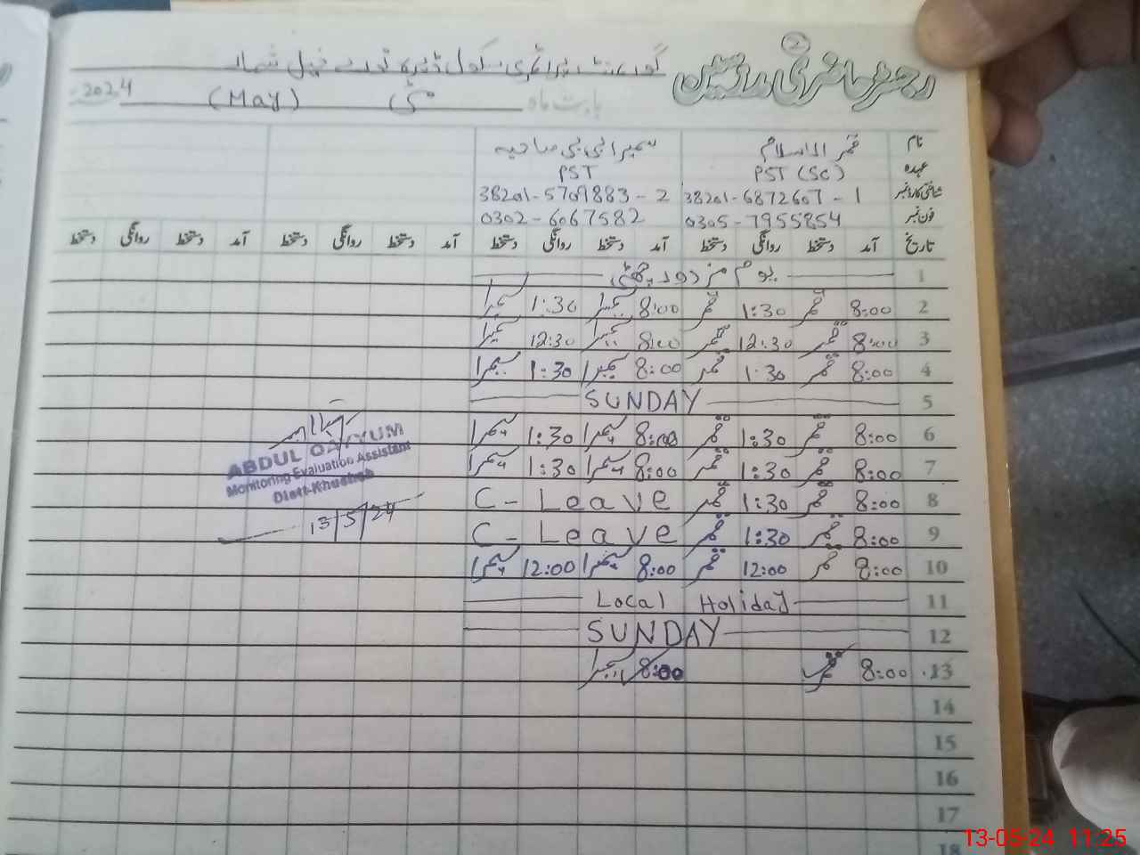| Name: Qa**** Is**** Designation: (School Headmaster's/Headmistress's) PST Phone/Cell Number: 03**** |