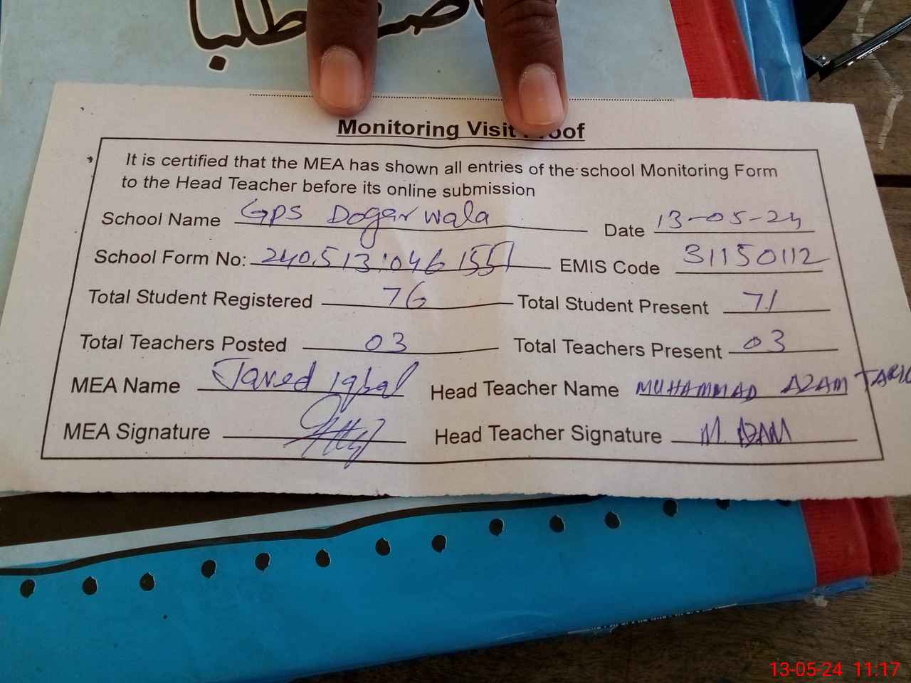 | EMIS Code: 31150112 | Name of School: GPS DOGAR WALA | |||