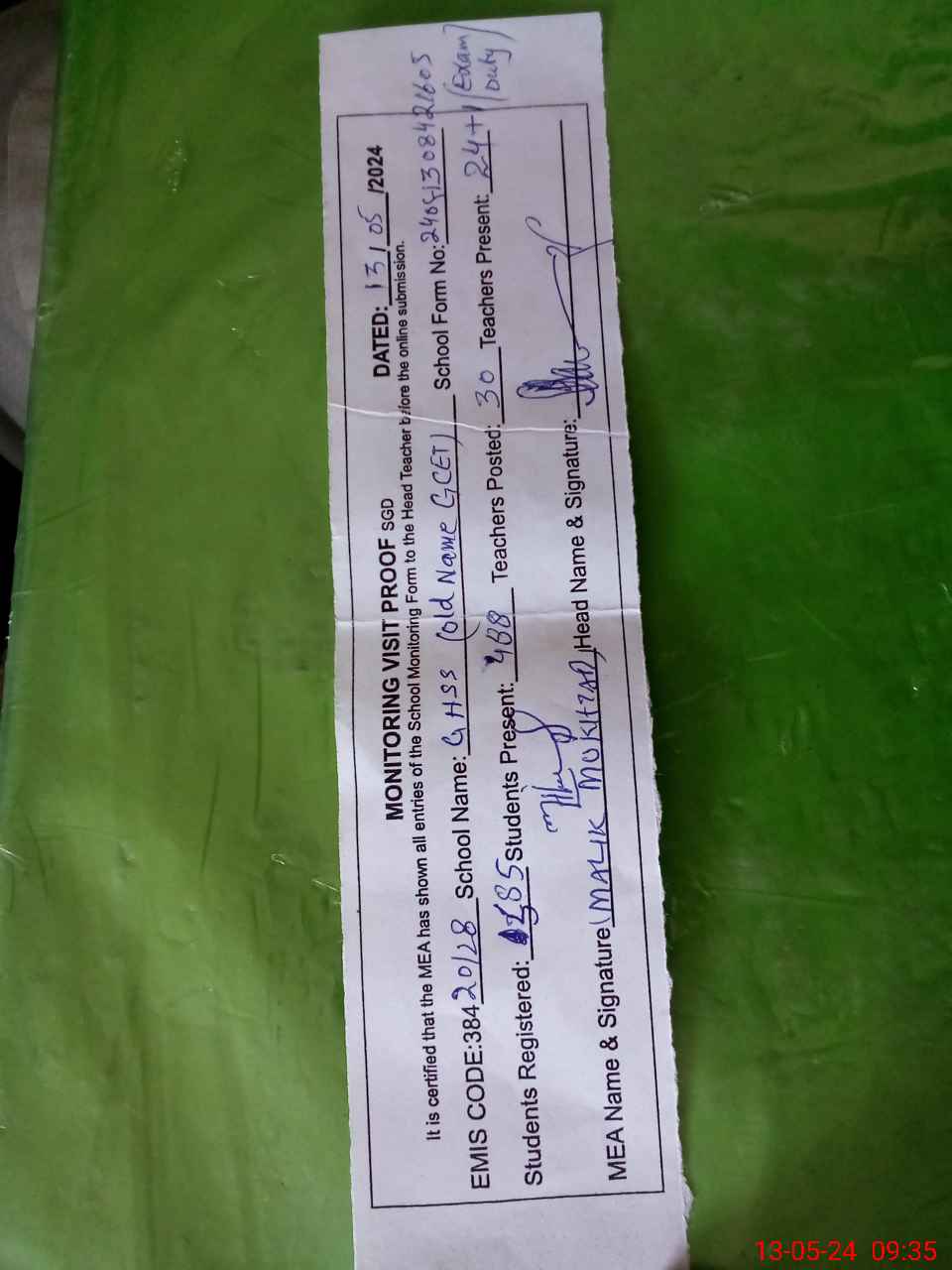 | EMIS Code: 38420128 | Name of School: GHSS SARGODHA (Old name GCET) | |||