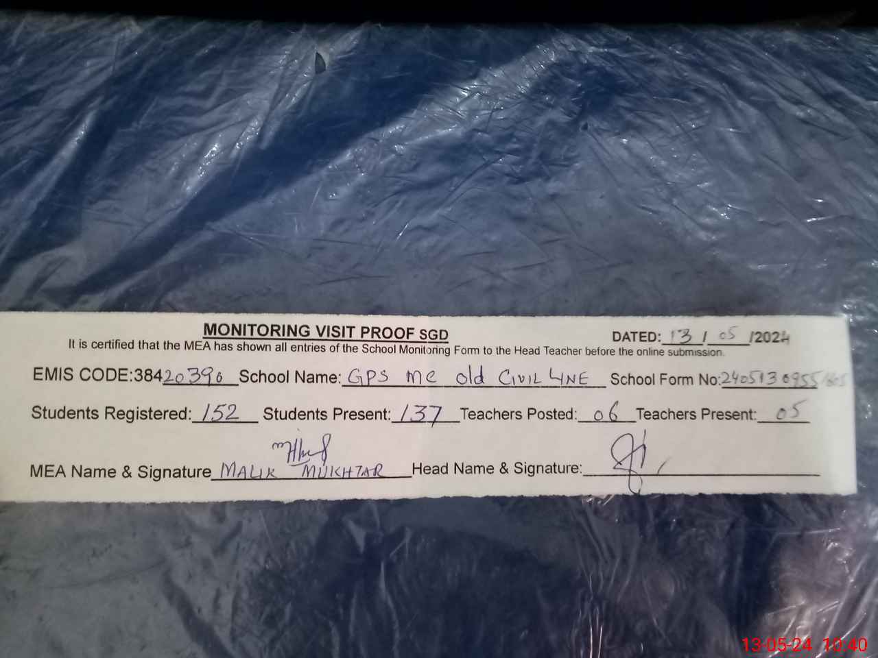 | EMIS Code: 38420390 | Name of School: GPS MC OLD CIVIL LINE SARGODHA | |||