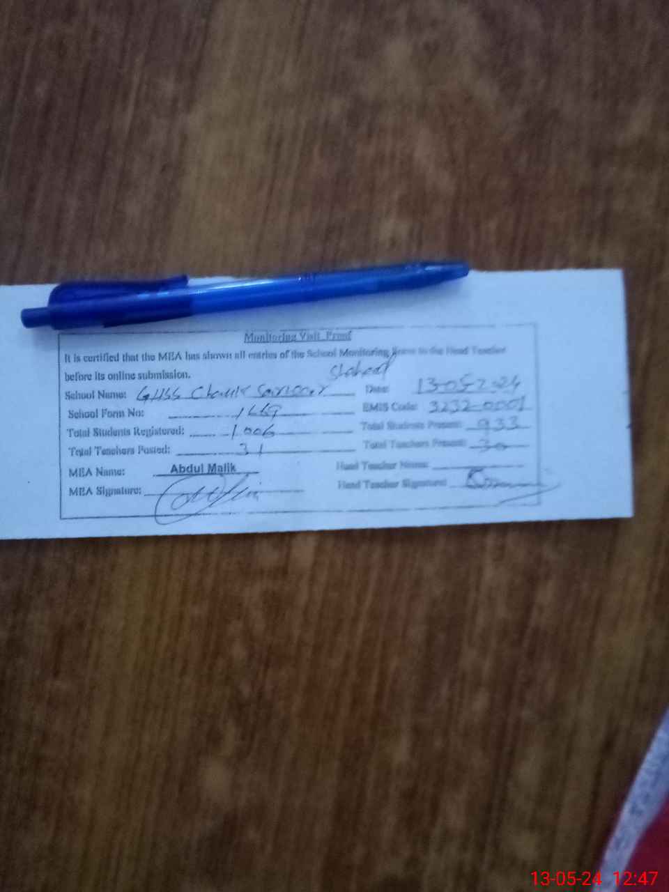 | EMIS Code: 32320001 | Name of School: GHSS CHOWK SARWAR SHAHEED | |||